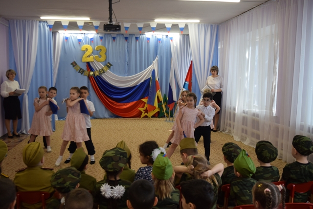 Сегодня в преддверии Дня защитника Отечества в нашем детском саду прошел смотр-конкурс инсценированной песни «Песни военных лет». В конкурсе приняли участие три возрастных группы «Непоседы», «Зайчики», «Любознайки». На суд жюри были представлены легендарные песни: «На солнечной поляночке», «Огонек», «Синий платочек». Дети были подготовлены на высоком уровне :сценическое мастерство, эмоциональность, артистичность, внешний вид, оригинальность постановки, но конкурс есть конкурс… По итогам смотра 1 место заняла группа «Любознайки», 2 место группа «Непоседы», 3 место группа «Зайчики». Благодарим педагогов и родителей за бесценный вклад в воспитание патриотизма у подрастающего поколения.